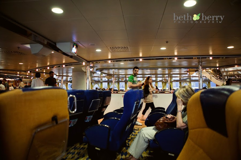 And...we totally weren't expecting this to be the ferry! We had visions of a small boat sloshing around in the water, covered with people and goats (did I get this idea from watching "Mama Mia"?)...instead, we had this!
